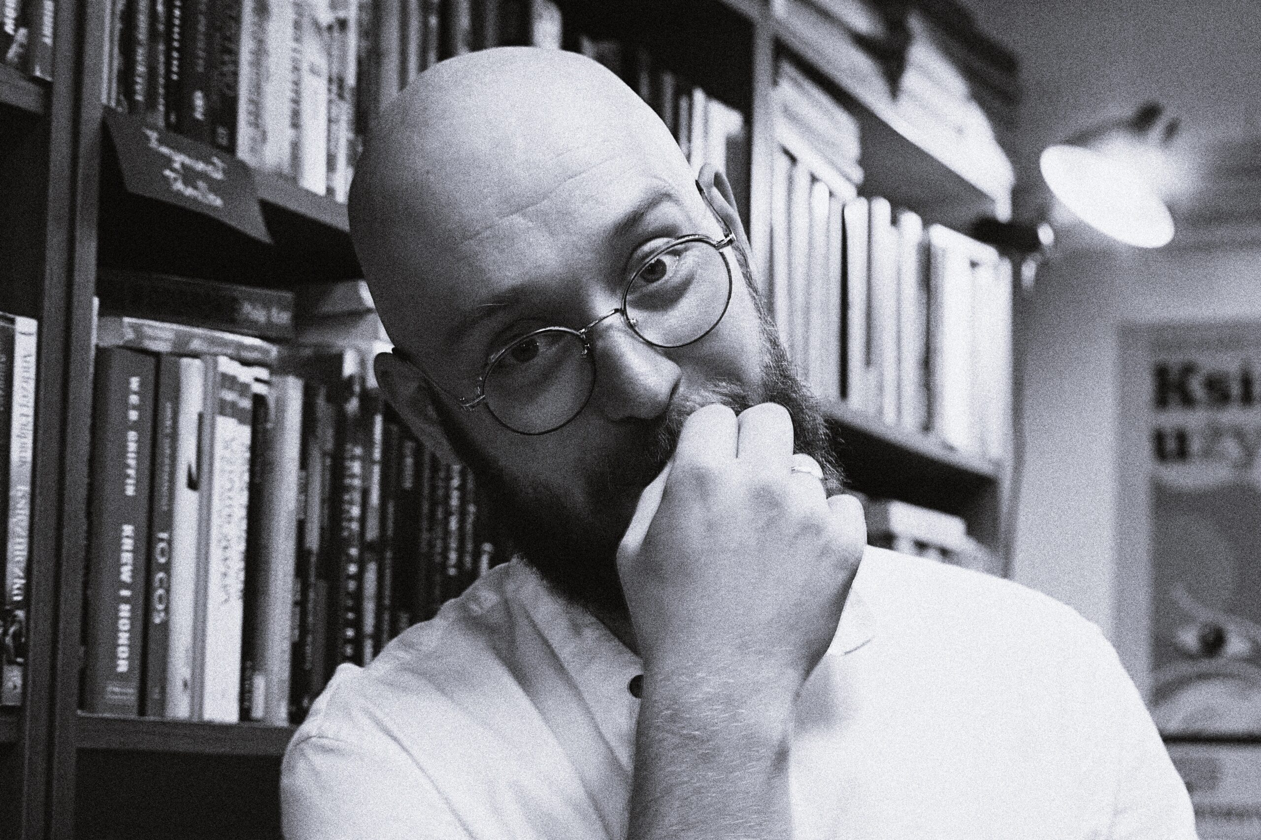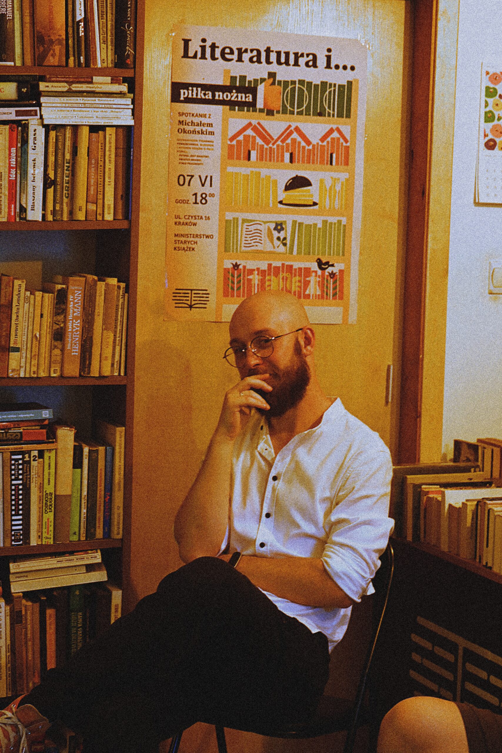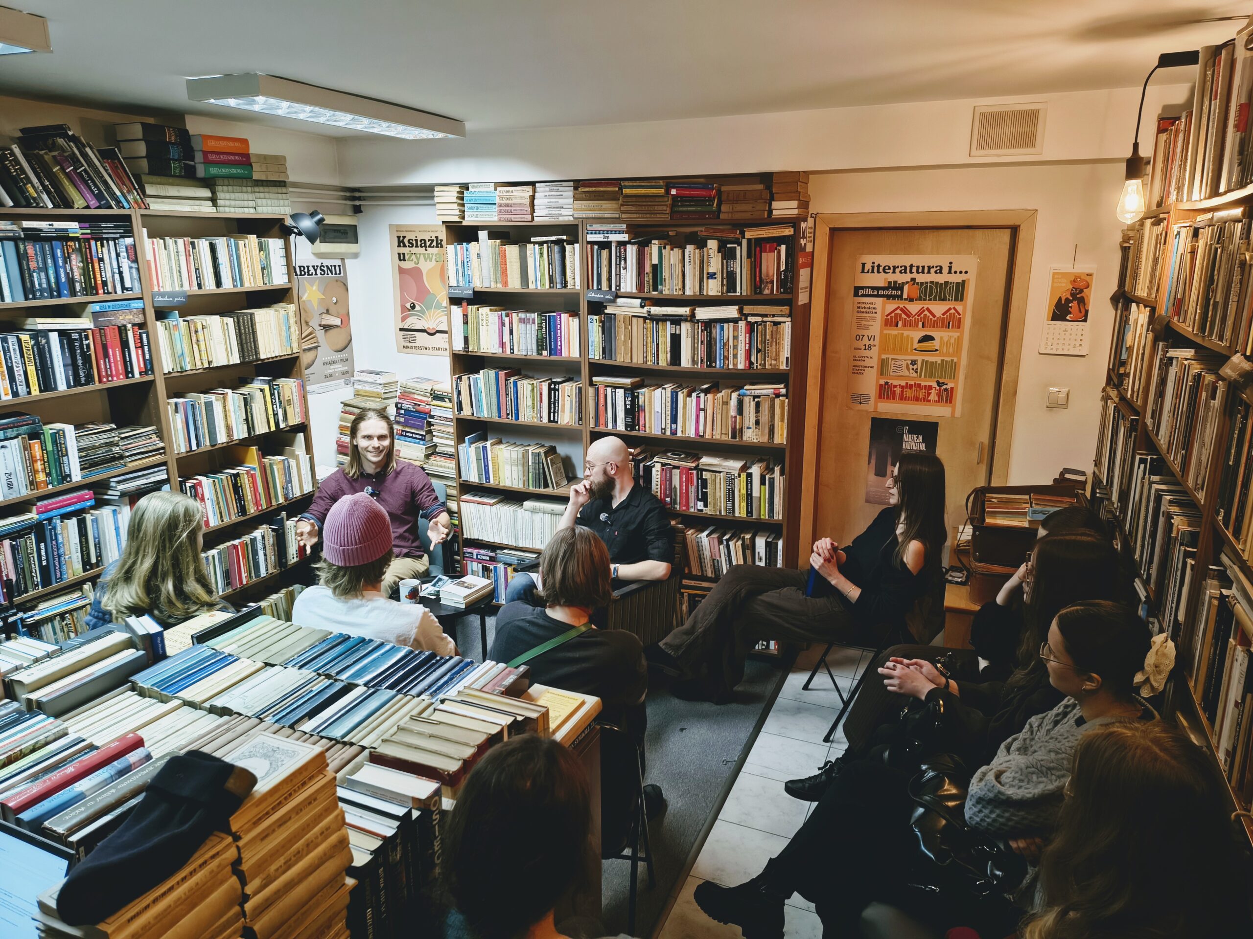 Spotkanie prowadził właściciel i twórca tego miejsca, Piotr Brzozowski. Ludzie słuchali jak zaczarowani, delektowali się tymi chwilami spędzonymi poza strumieniem aktualności (jak można by zgrabnie przetłumaczyć newsfeed); spokojne głosy rozmawiających rezonowały w mikroskopijnym wnętrzu, wnikając między regały, gdzie ginęły wśród książek. Bez popadania w przesadę można by wyobrazić sobie na środku pomieszczenia ognisko, na górze gwiazdy – i może jakiś letni wieczór. Nie chciałem zakłócić tego miru (ależ inaczej brzmi dzisiaj to swojskie słowo, kiedy na wschodzie znowu szaleje Lewiatan!), więc wchodziłem do środka na paluszkach.